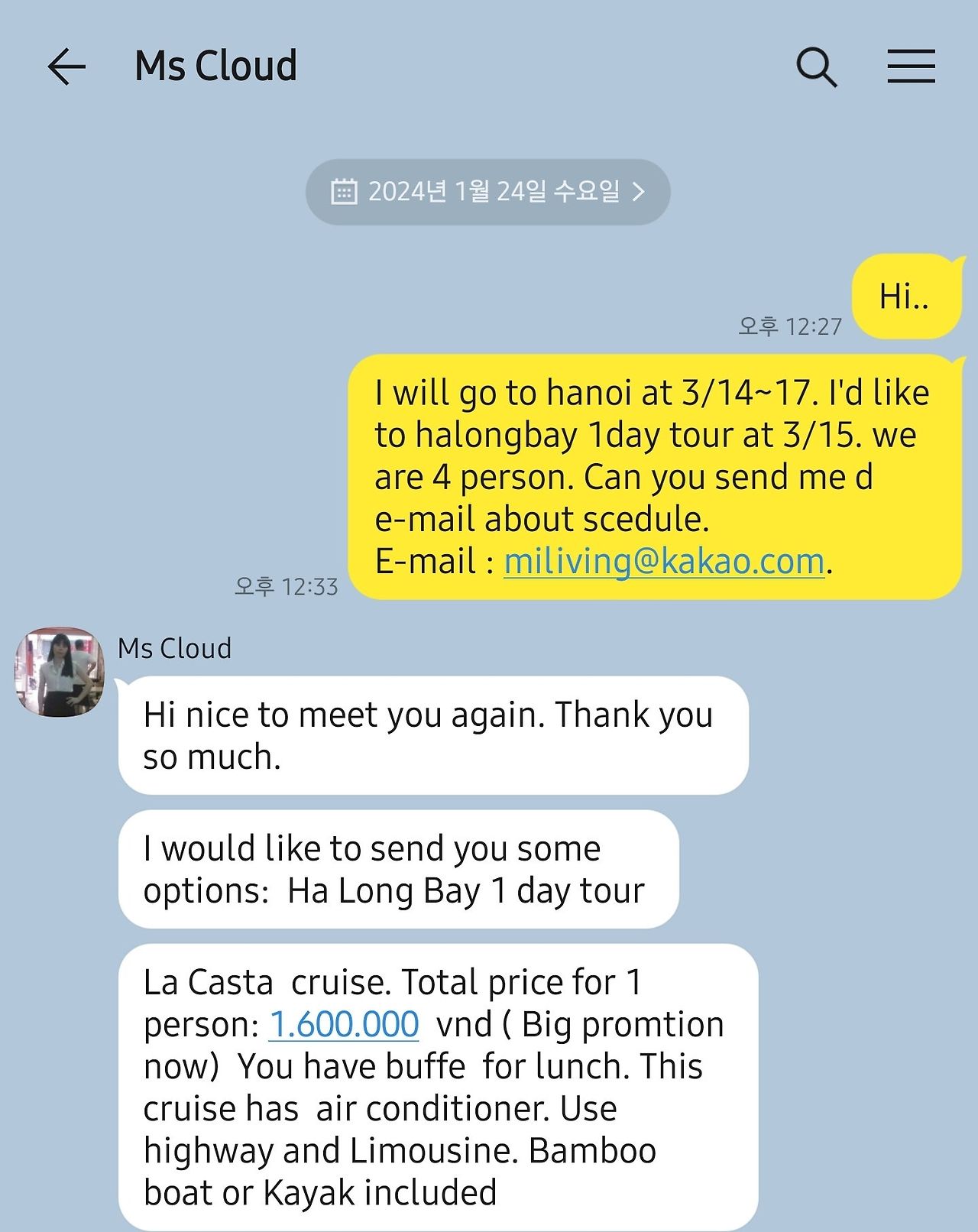 나름 여기저기 많이 뒤져보고 최종 선택은 구름여사(카톡ID:mscloudtravel) 통해서 인당 1,600k동에 사전에 예약했습니다.
